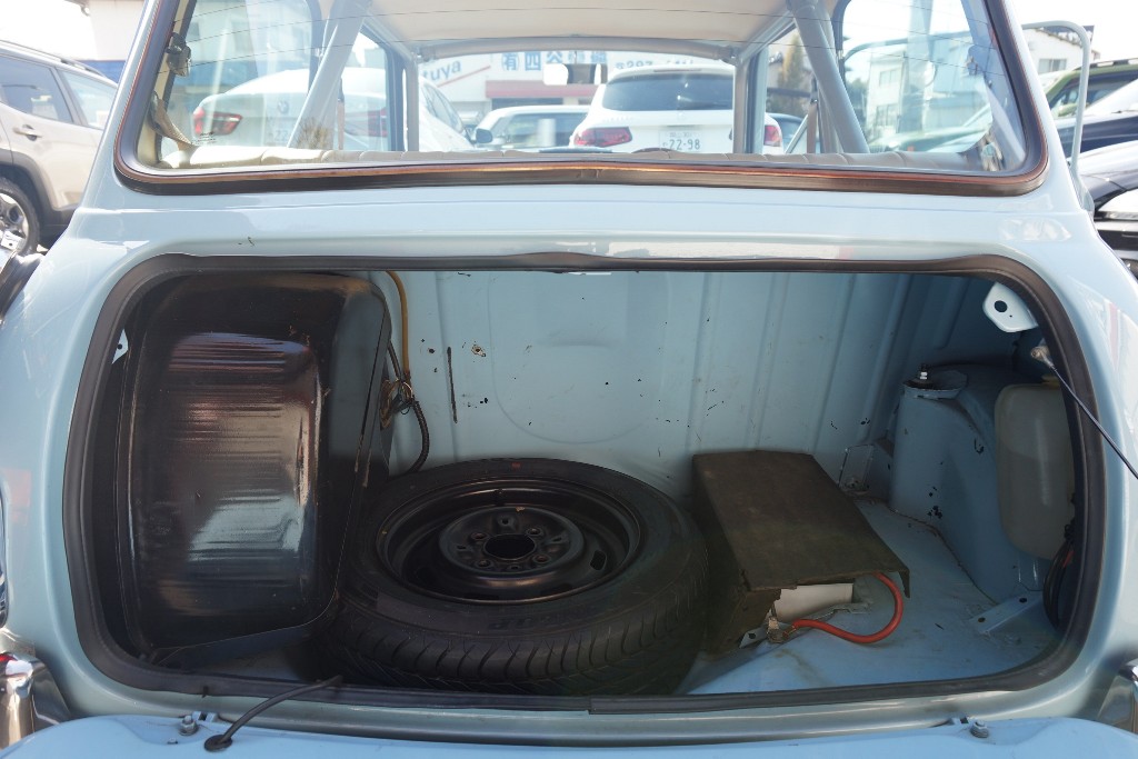 ベンチシート 前席シートが完全には独立しておらず、長椅子状につながって見える構造になっています。